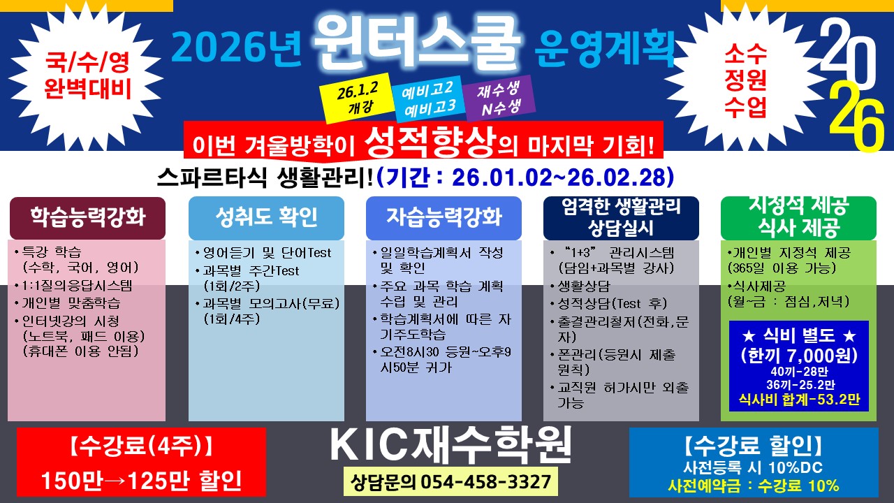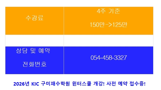 2026³â KIC ±¸¹ÌÀç¼öÇпø À©ÅͽºÄð °³°! »çÀü ¿¹¾à Á¢¼öÁß!